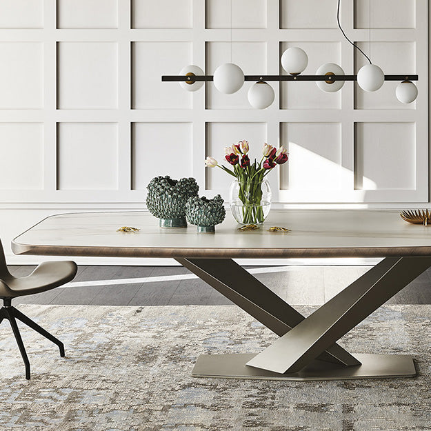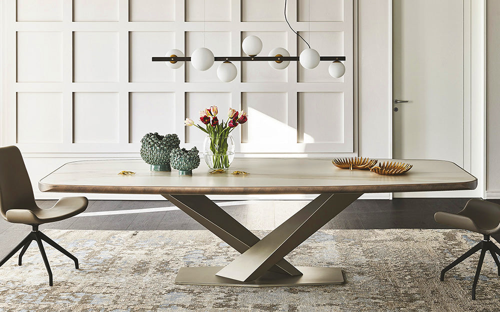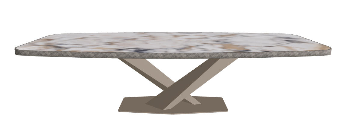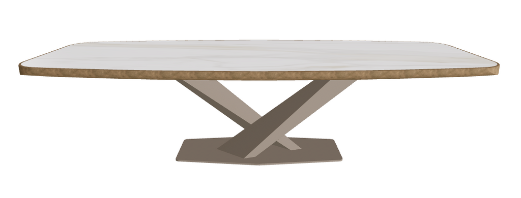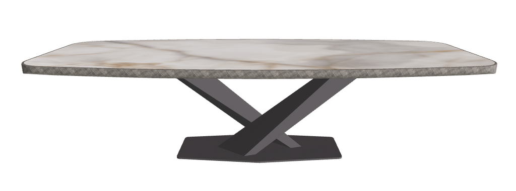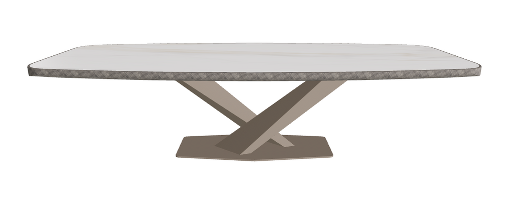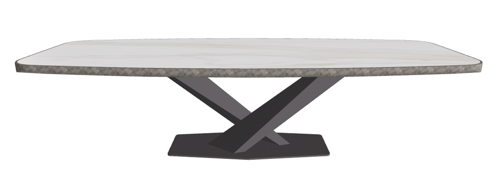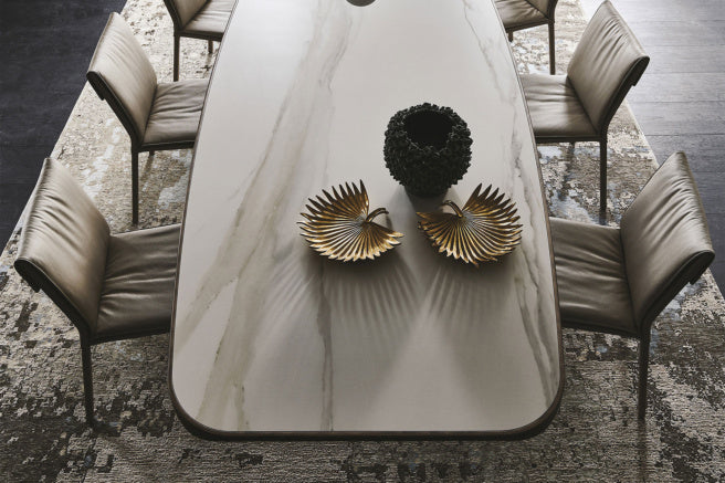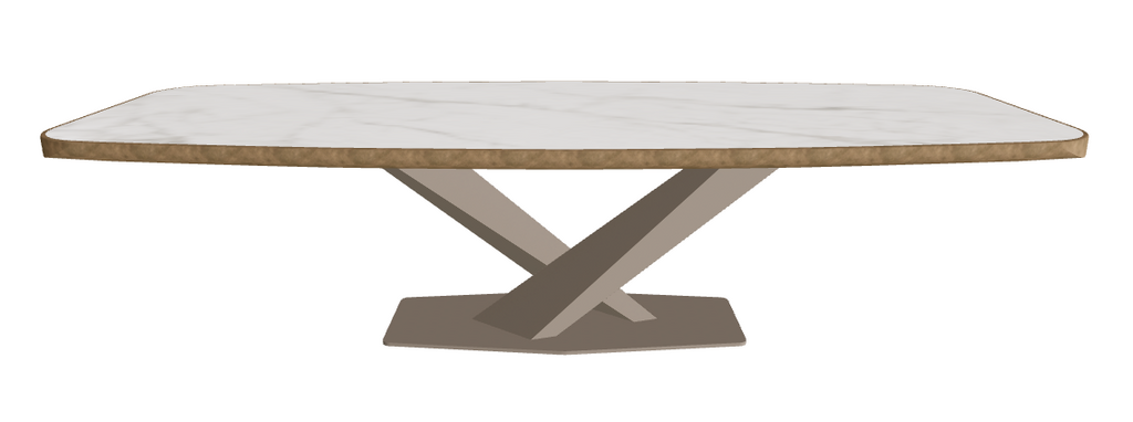 The Cattelan Italia Stratos Keramik Premium Barrel-Shaped Dining Table 300×128×73h is the ultimate expression of Italian design, blending cutting-edge materials and iconic styling for a truly showstopping centrepiece. The grand, softly curved barrel-shaped ceramic top features your choice of opulent matte or glossy marble-effect finishes, elegantly framed by a real brushed metal edge in Brushed Bronze or Brushed Grey for distinctive luxury. This expansive 300 cm surface easily seats up to 12, making it perfect for unforgettable gatherings. The angular architectural base, available in a palette of embossed and lacquered finishes, delivers both drama and unwavering support. With artisan craftsmanship, statement edge detail, and an unrivalled selection of finishes, Stratos Keramik Premium transforms any dining space into a gallery of modern Italian luxury.