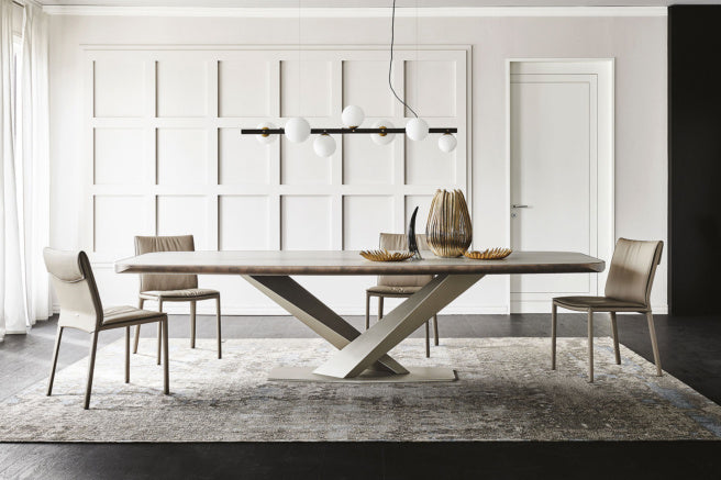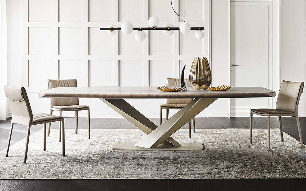- Architectural Metal Base: Sculptural, intersecting legs in a range of embossed or lacquered finishes (excluding Brushed Bronze & Brushed Grey) deliver both style and stability.