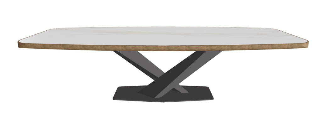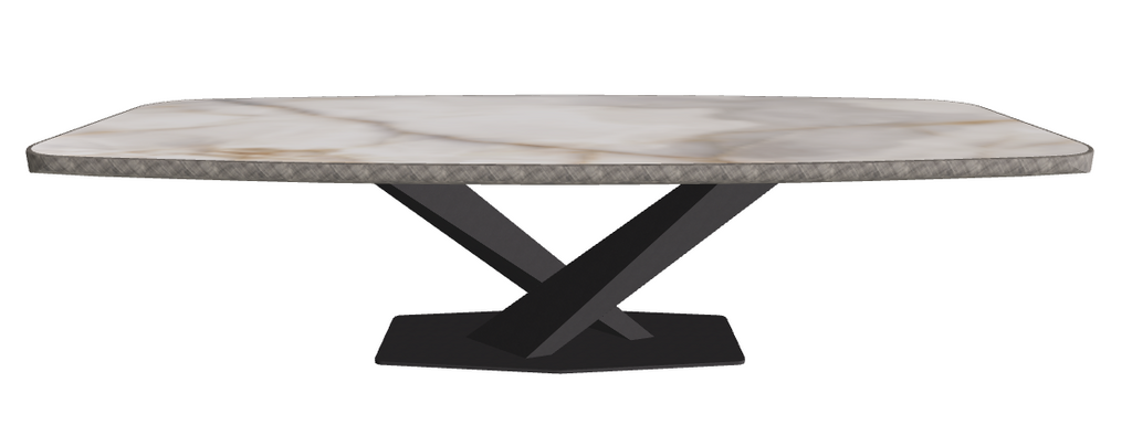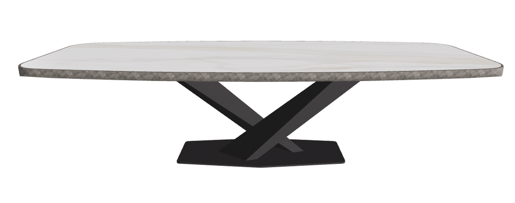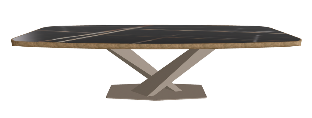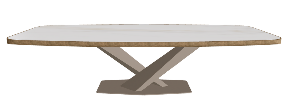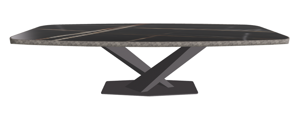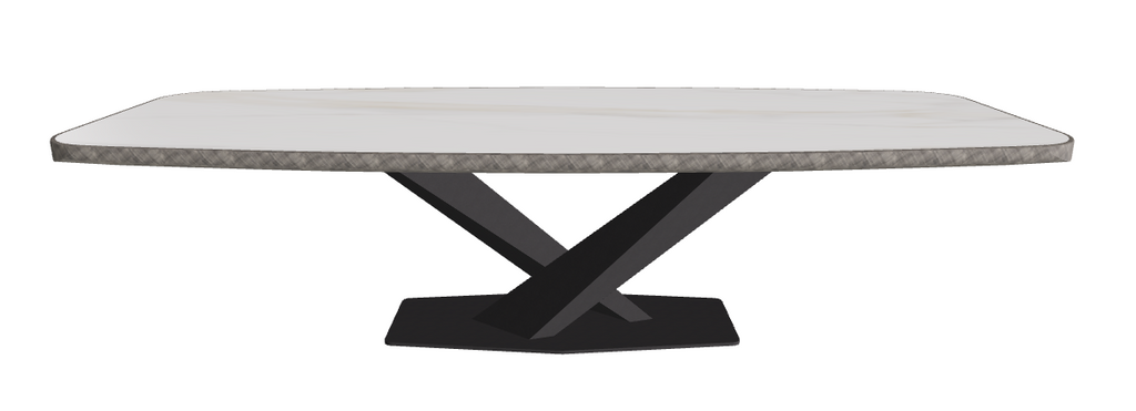- Premium Barrel-Shaped Ceramic Top: 300×128 cm surface with an elegantly curved silhouette and exclusive brushed metal edge for a sophisticated, tactile statement.