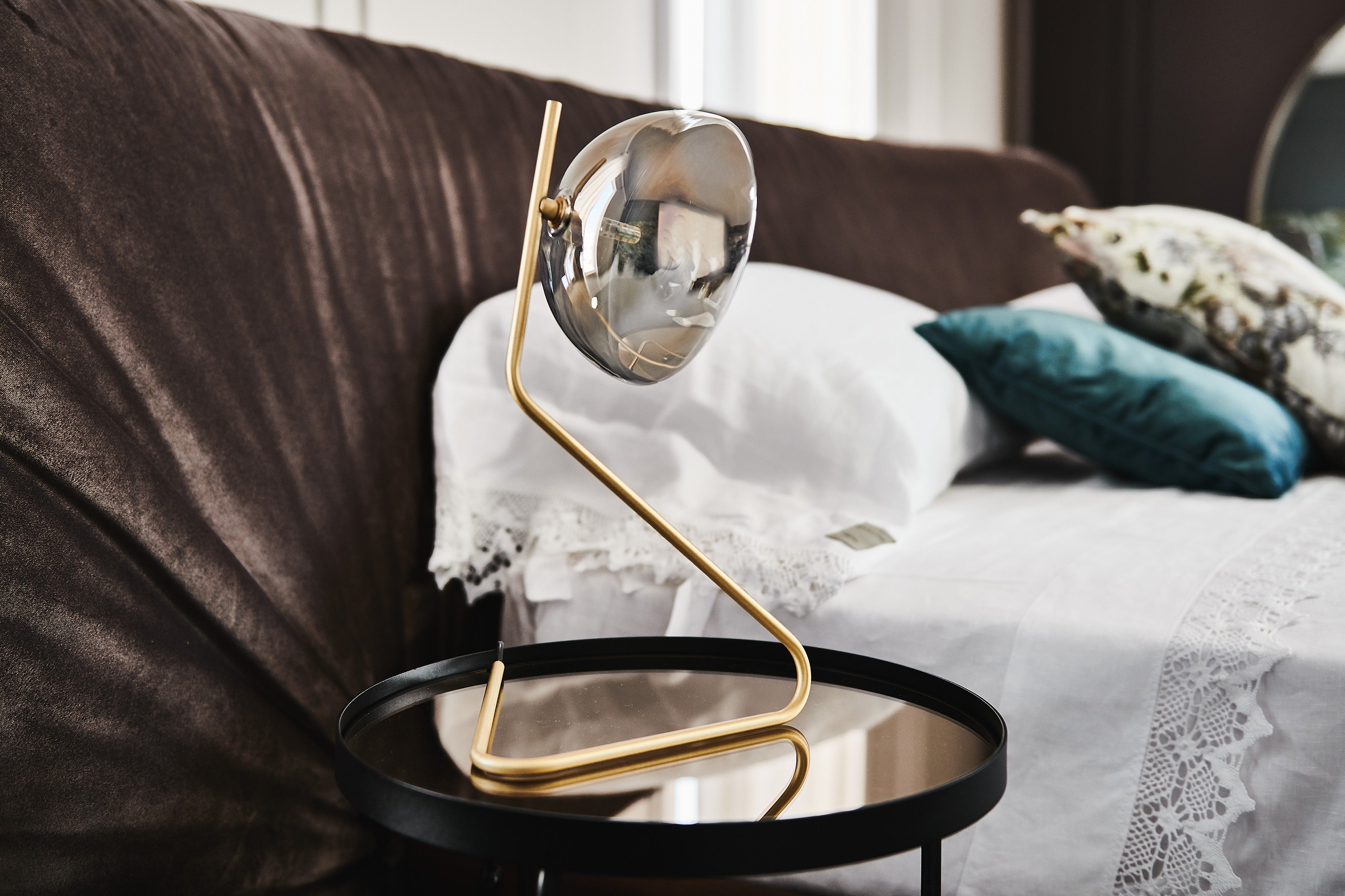 The Cattelan Italia Sunset is a sophisticated lighting collection that includes both ceiling and table lamps. Designed with a satin brass frame and a softly curved fumé glass shade, Sunset exudes retro elegance. Whether used alone or arranged in clusters of up to 12, this design adds a warm, atmospheric glow to modern interiors.