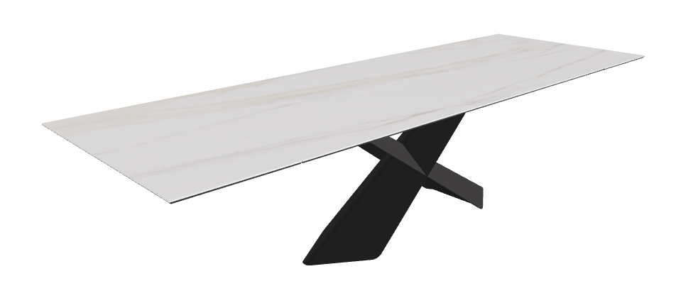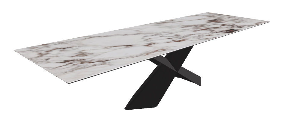 The Cattelan Italia Tyron Keramik Drive Rectangular Extendible Dining Table 200→294×106×74h redefines modern dining with maximum flexibility and unmistakable Italian style. Its impressive rectangular ceramic top extends effortlessly from 200 cm to 294 cm, providing generous seating for 8 when closed and up to 12 guests when fully open. The marble-effect ceramic surface delivers exceptional durability, rich visual texture, and is easy to maintain, while the table’s signature intersecting metal base anchors any setting with a bold architectural touch. Ideal for entertaining, everyday family life, or show-stopping dinner parties, this designer table lets you personalise both top and base from a wide palette of luxury finishes.