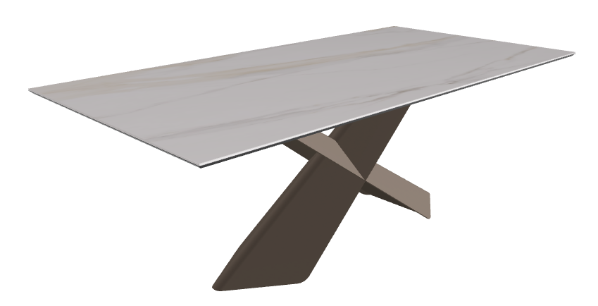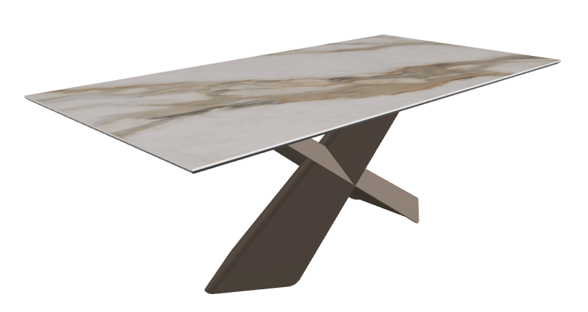 - Sculptural Metal Base: Iconic intersecting legs in your choice of Brushed Bronze, Brushed Grey, Bronze Embossed, Titanium Embossed, Black Embossed, or Graphite Embossed—allowing you to customise your statement.