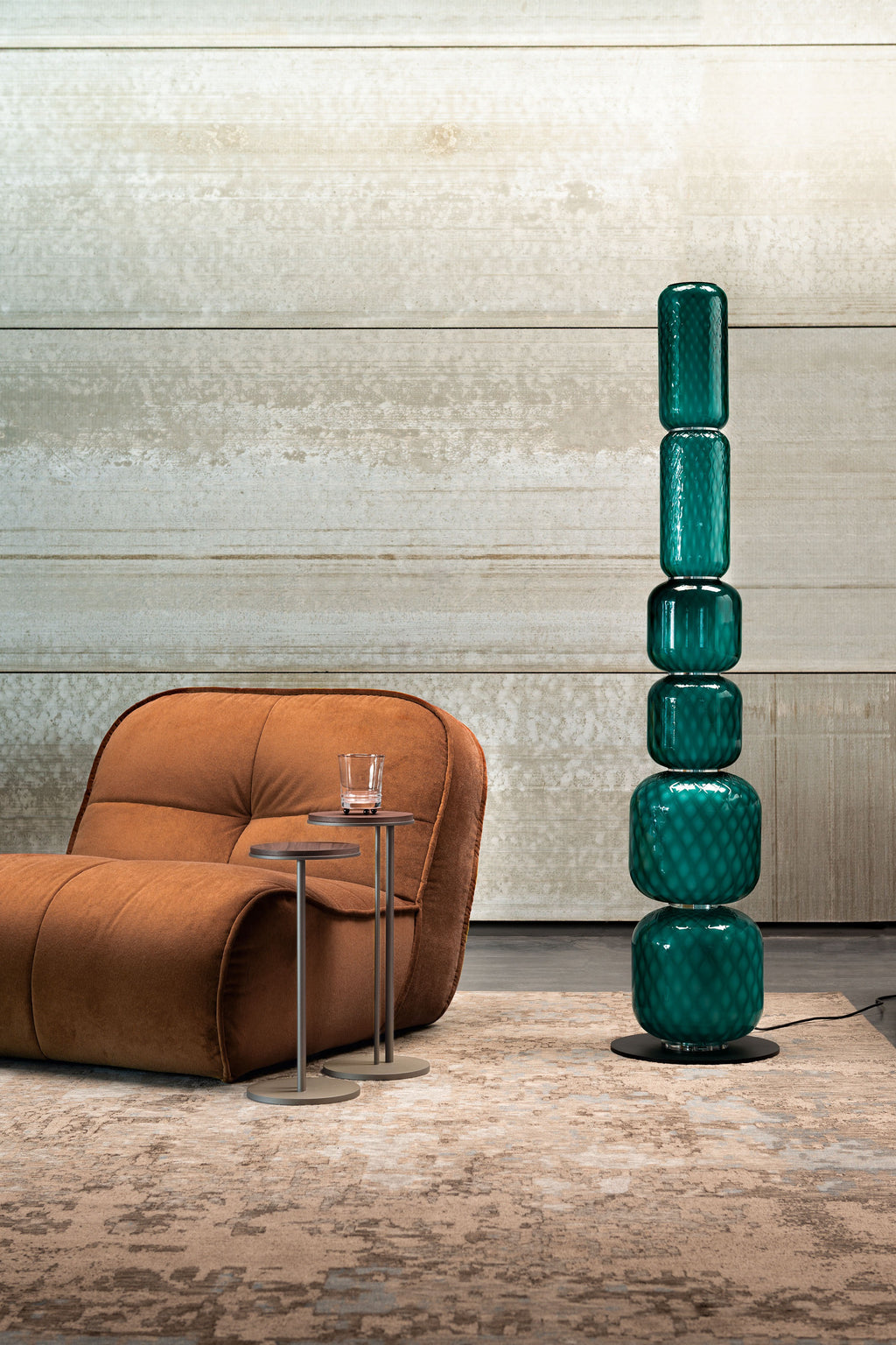 The Cattelan Italia Wanted floor lamp is a sculptural lighting piece born from the rich traditions of Venetian glass artistry. Its stacked glass modules—crafted using the refined Balloton technique—produce a faceted, three-dimensional texture that catches and diffuses light beautifully. Elegant, modern, and decorative, this floor lamp adds warmth and character to both contemporary and classic interiors.