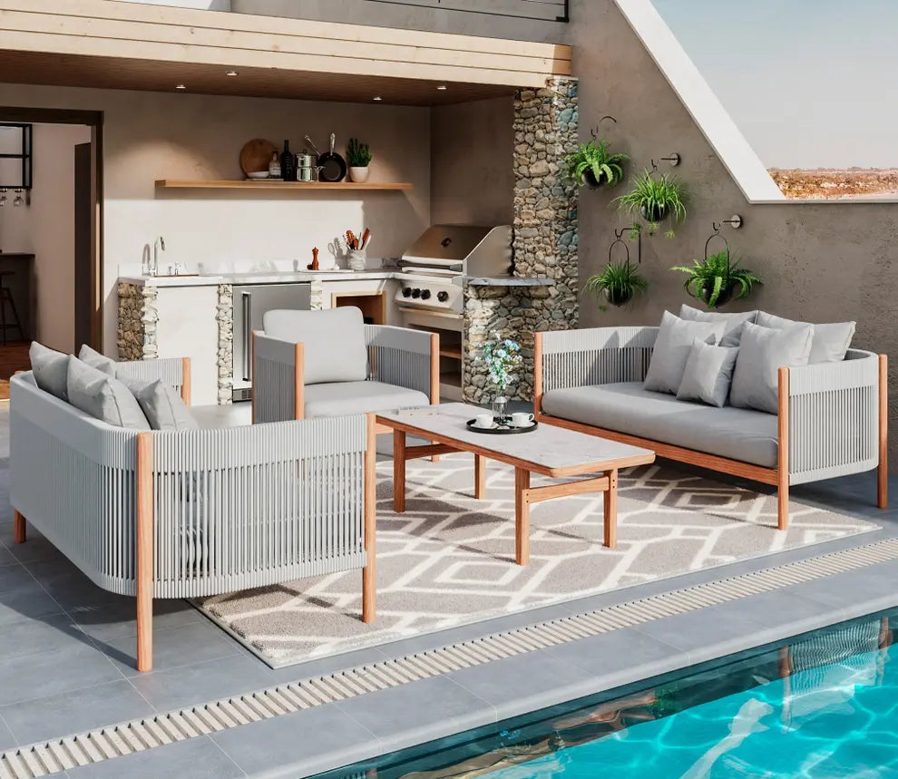 - Durable Materials: Premium-grade teak, weather-resistant olefin cord, and high-performance Sunbrella fabrics withstand diverse outdoor conditions.