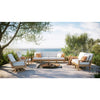 Teak & Fabrics: Grade‑A teak frame pairs with Sunbrella® and Sunbrella Rain® cushions engineered for UV, moisture, and mildew resistance.
