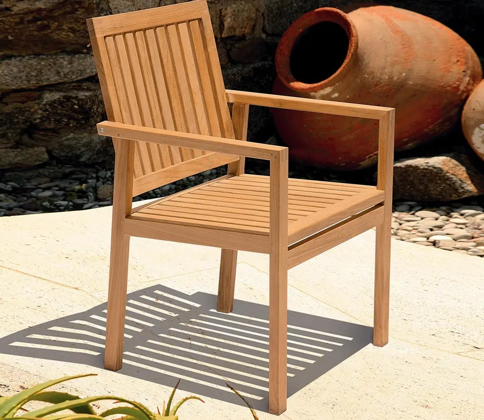 The Linear Carver is backed by Barlow Tyrie's comprehensive teak furniture warranty for lasting structural performance.