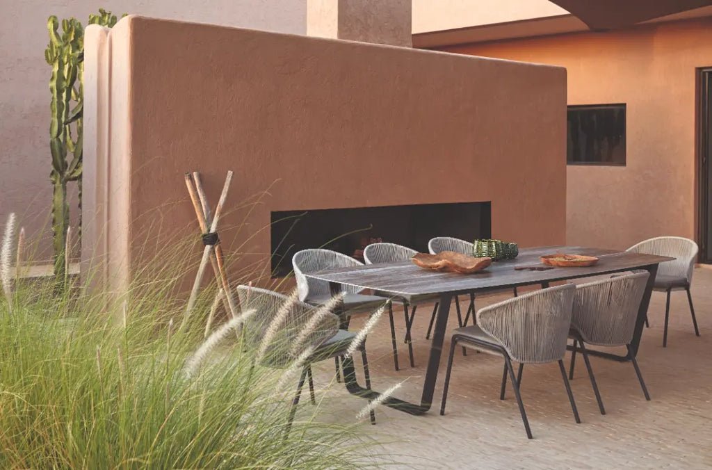 Considered Outdoor Dining Scale: Perfectly suited to residential terrace dining, boutique hotel and resort courtyards, pool deck entertaining, and premium commercial outdoor restaurant settings where a refined mid-scale rectangular dining table of genuine material authority is required — the 264 × 118 cm footprint seating 6+2 persons with ease while its clean rectangular form integrates naturally with any premium outdoor architecture, garden design, and accompanying Air collection seating.