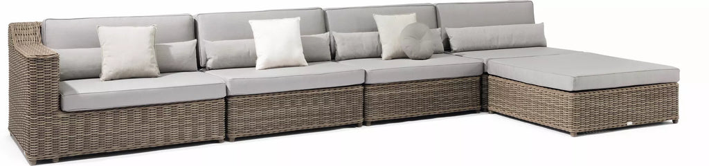 The Manutti San Diego Concept 4 is a complete modular outdoor sofa arrangement that combines elegance, adaptability, and exceptional craftsmanship. Configured in both left and right orientations, this spacious corner setup features deep seating and generous proportions, offering luxurious comfort and timeless design in Manutti’s signature Old Grey wicker finish.
