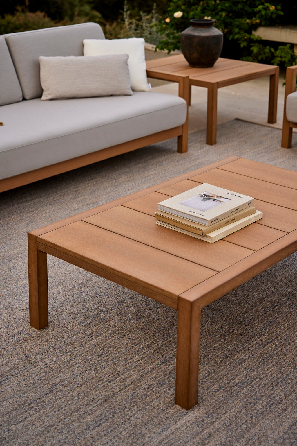 The Kubik Rectangular Coffee Table brings sharp lines and clean geometry to your outdoor space. With its powder-coated aluminum frame and your choice of a compact or porcelanic top, this table delivers both strength and contemporary flair in equal measure.