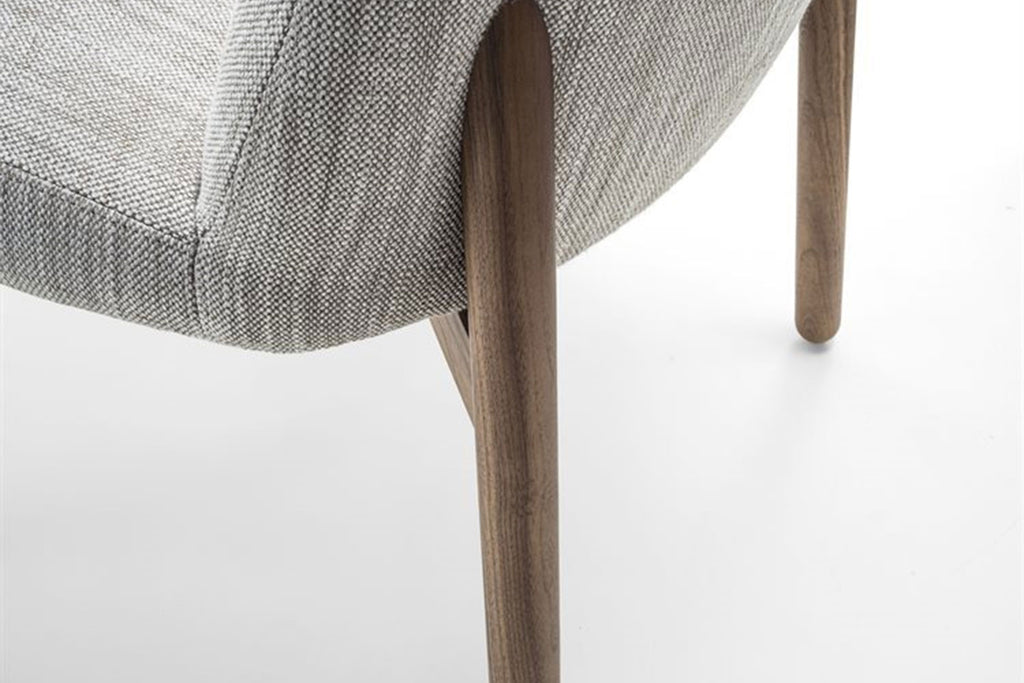 The Porada Abby Dining Chair designed by Gabriele & Oscar Buratti is a refined expression of contemporary dining elegance, merging classic woodworking heritage with exceptional ergonomic comfort and endless customization possibilities. This chair features a gently curved upholstered seat, choice of stunning solid Canaletta walnut or ash wood frame, and perfectly balanced proportions that bring understated luxury to both modern and traditional dining rooms. Available in both versions with or without integrated armrests, the Abby chair stands out for its versatility, customizable finishes, and premium tailored upholstery in Porada's wide collection of leathers and fabrics.