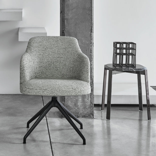 The Porada Abby Swivel Dining Chair designed by Gabriele & Oscar Buratti is a contemporary reimagining of the Abby collection’s comfort and elegant craftsmanship, providing dynamic maneuverability and exceptional ergonomic support. Featuring a sophisticated four-spoke or five-spoke (with castors) swivel metal base in either chrome-plated or black matt finish, this versatile chair blends Italian tailoring, superior upholstery, and an inviting curved seat with armrests. Engineered for both residential and contract environments—dining, conference, or office—the Abby Swivel adapts seamlessly to any setting where flexibility, prestige, and comfort are required.