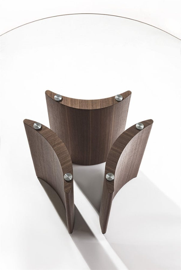 Six-Element Base (Ø250cm): Six individual half-moon walnut elements providing enhanced structural support and visual impact for commanding large-scale table