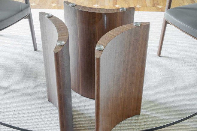 - Sculptural Half-Moon Base Design: Features innovative base construction composed of three individual half-moon elements (Ø120-200cm) or six elements (Ø250cm) in solid Canaletta walnut, creating distinctive visual rhythm and architectural presence that transforms dining spaces into contemporary art galleries.