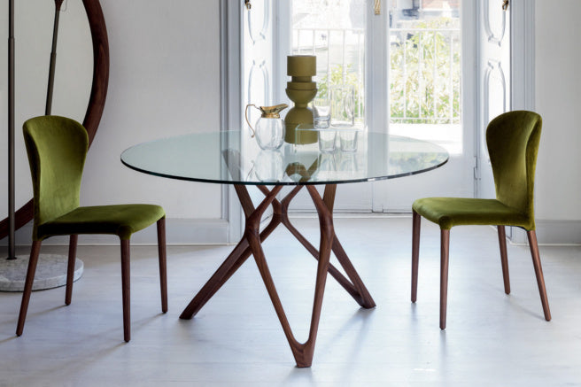 The Porada Astrid Dining Chair designed by G. Carollo represents a refined expression of contemporary Italian design philosophy, combining graceful proportions with exceptional comfort and sophisticated material choices. This elegant dining chair features a distinctive solid Canaletta walnut or ash wood frame with clean, sculptural lines that demonstrate Carollo's mastery of balancing visual lightness with structural integrity. The carefully engineered proportions and premium upholstery options create a chair that seamlessly transitions between formal dining environments and casual living spaces, making it perfect for discerning homeowners, luxury restaurants, or design-conscious hospitality settings seeking authentic Italian craftsmanship with timeless aesthetic appeal.