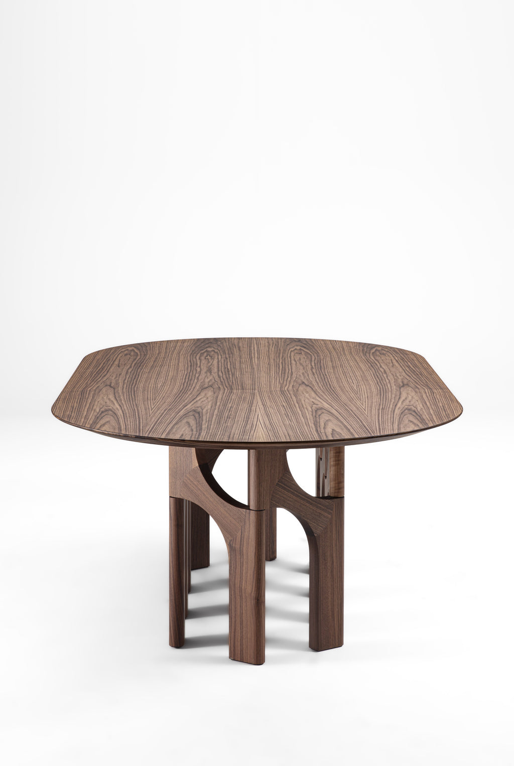 - Innovative Modular Base Construction: Features distinctive modular base in solid Canaletta walnut with geometric module configuration that creates architectural sophistication and visual interest, offering unique design language that transforms dining spaces while ensuring optimal structural integrity and stability.