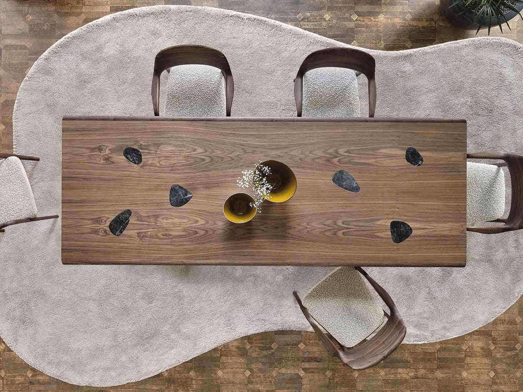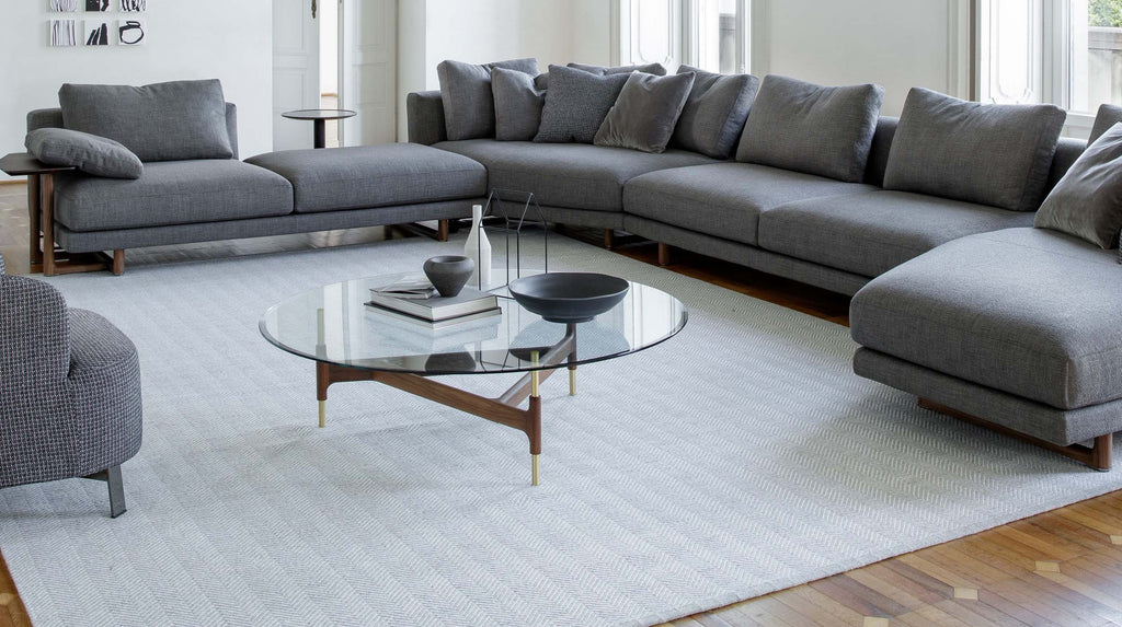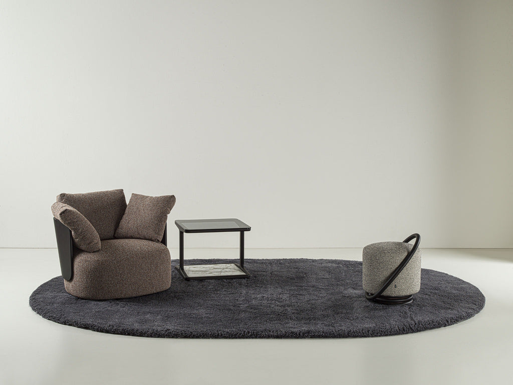 The Porada Clyo Rug collection is made of 50% New Zealand wool and 50% Tencel Lyocell, available in eight refined colour combinations. Offered in three elegant shapes — rectangular, oval, and round — the rugs are characterised by their uniform thickness of either 28 or 45 mm. New Zealand wool provides resilience and reduces shadows and footprints, while Tencel Lyocell adds a subtle, natural sheen, ensuring the rug’s durability and understated elegance.