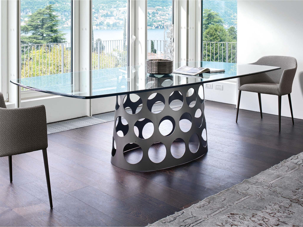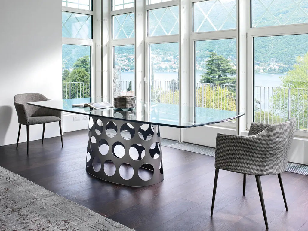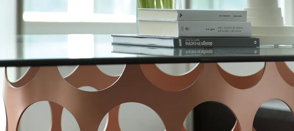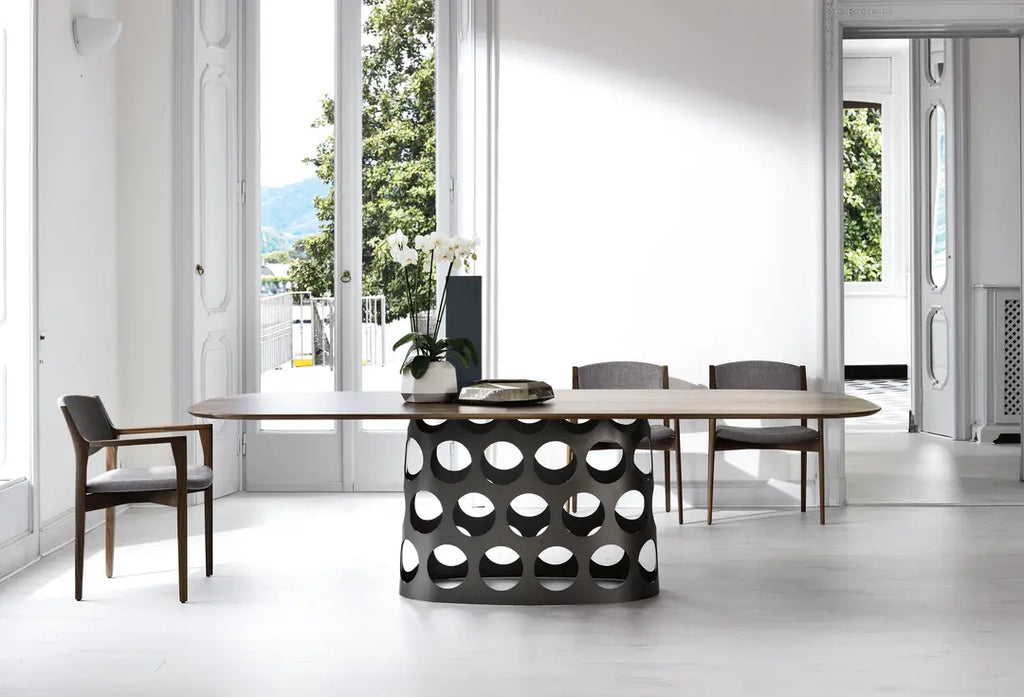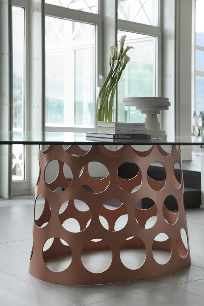 Distinctive Metal Base: Each table is anchored by a signature perforated metal pedestal, available in elegant matt black, sophisticated bronzoro, or subtle grey pewter hues for versatile interior pairing.