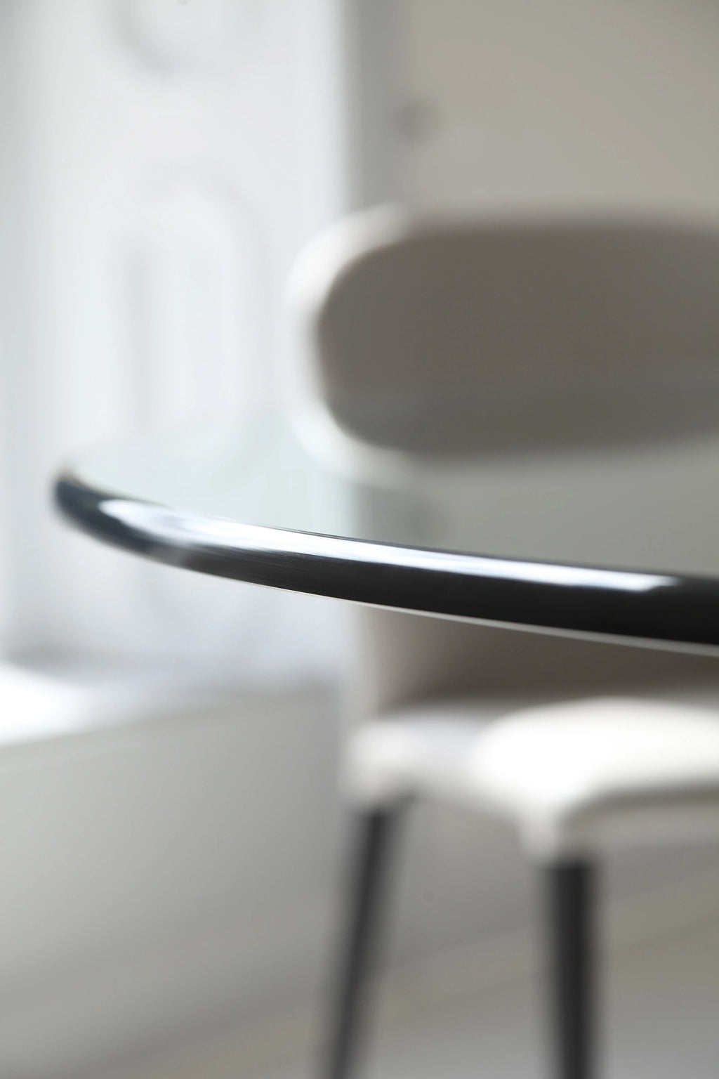 The highly polished edge and robust thickness provide both tactile solidity and refined visual impact. Ideal for those seeking a table that maximizes light flow in contemporary or open-plan dining spaces.