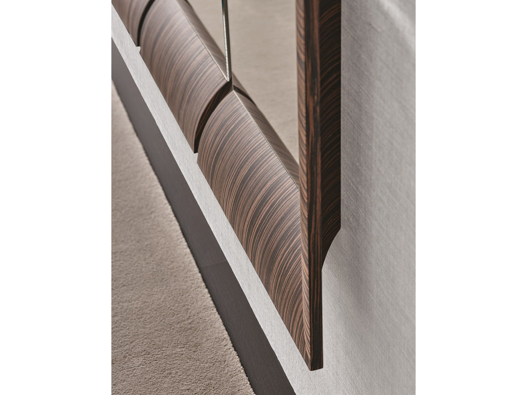 Triple Wall Mirrors by Tarcisio Colzani form a modular collection of square mirrors framed in rounded Canaletta walnut. Each element can be rotated and combined to create dynamic compositions, generating changing reflections and graphic patterns on the wall. The four standard compositions—Comp. A, B, C, and D—offer ready-made layouts of different sizes, while still allowing creative freedom.
