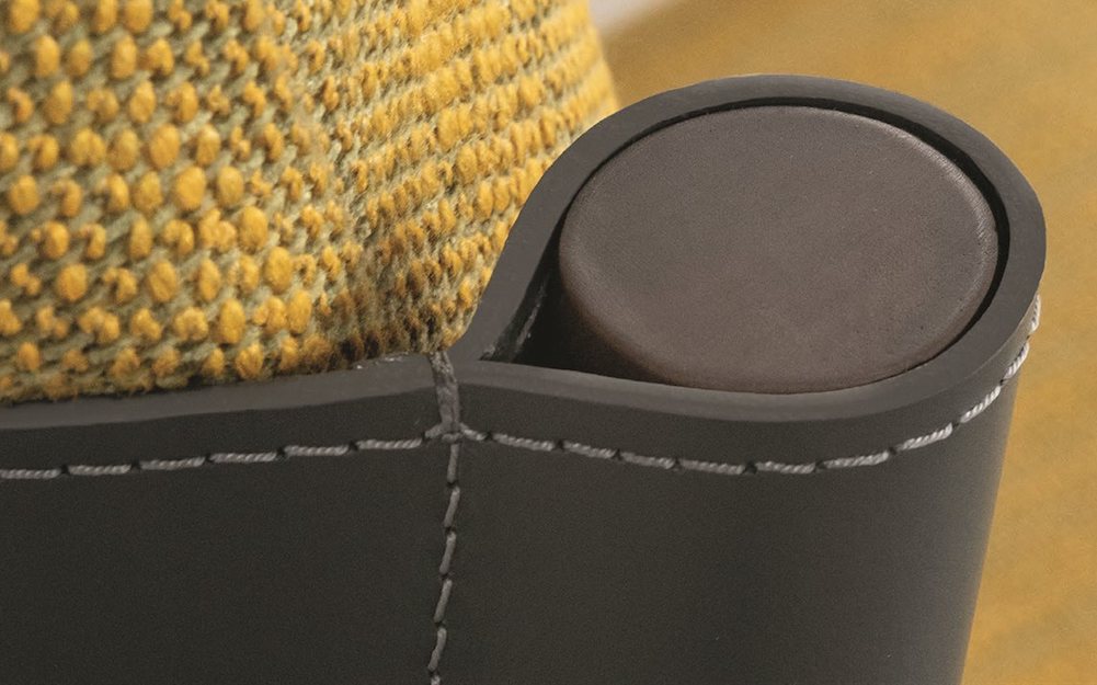 Cuoietto Leather Backrest: Entirely wrapped in premium Cuoietto hide leather with elegant embossed stitching details