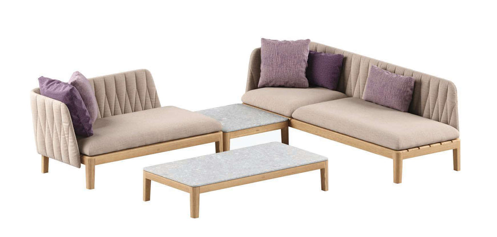The Royal Botania Calypso Lounge Set 03 is a striking, modular outdoor ensemble that showcases the perfect harmony between refined aesthetics and functional comfort. With luxurious teak frames, tactile cushions, and integrated ceramic-topped tables, this set is designed to elevate contemporary garden or terrace spaces with modular versatility.