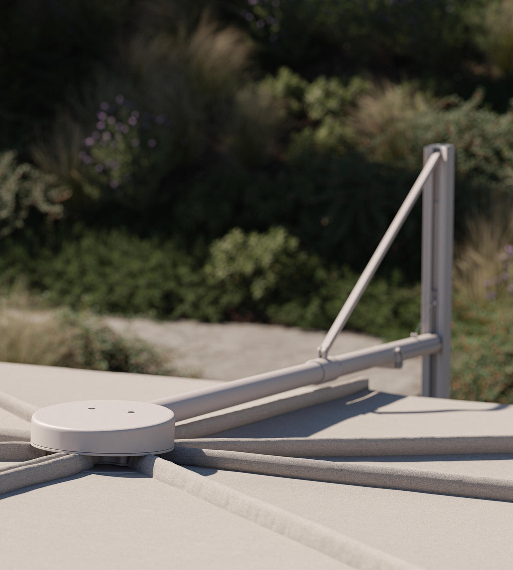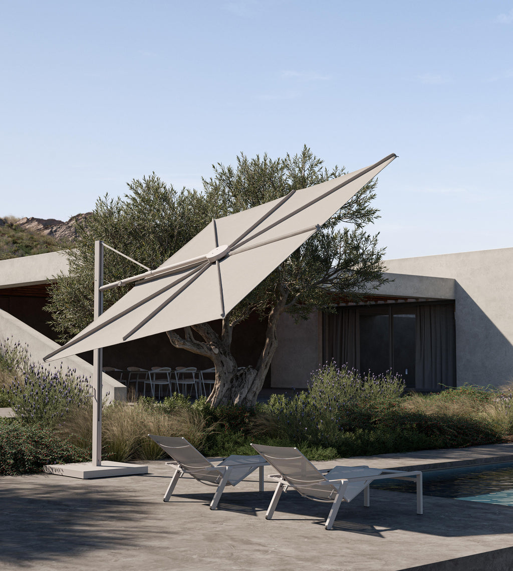 The Royal Botania Solaz Parasol 340 × 340 cm is a bold and architectural shade system designed by Kris Van Puyvelde. With its expansive square canopy and clean, minimalist lines, the Solaz makes a statement in modern outdoor living. Crafted from durable materials and engineered with advanced movement functionality, it offers unmatched flexibility and performance for luxury terraces, gardens, and poolside spaces.