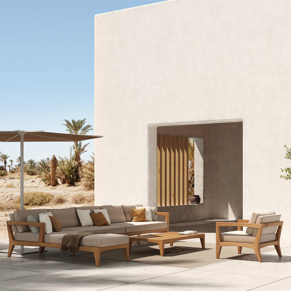 The Royal Botania Zenhit Lounge Set 01 is a luxurious and versatile outdoor seating arrangement, designed to elevate any sophisticated outdoor space. Crafted from premium teak wood with plush weather-resistant cushions, this modular lounge set seamlessly blends durability, style, and comfort.