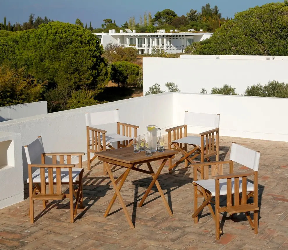 - Premium Materials: Natural teak frame with solid brass fittings and colorfast Sunbrella® Sling seat and back, offering excellent durability and weather resistance.