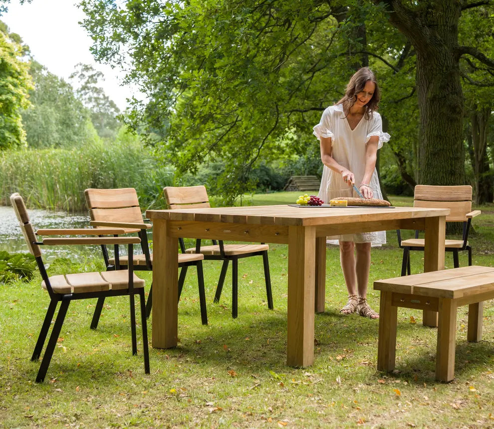 Barlow Tyrie masters rustic refinement with the Titan Armchair – combining characterful teak with modern aluminum engineering for heirloom-quality outdoor seating that endures generations of hospitality.