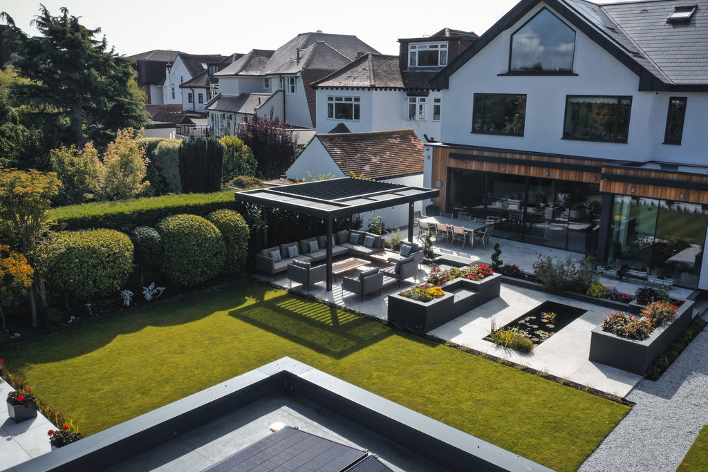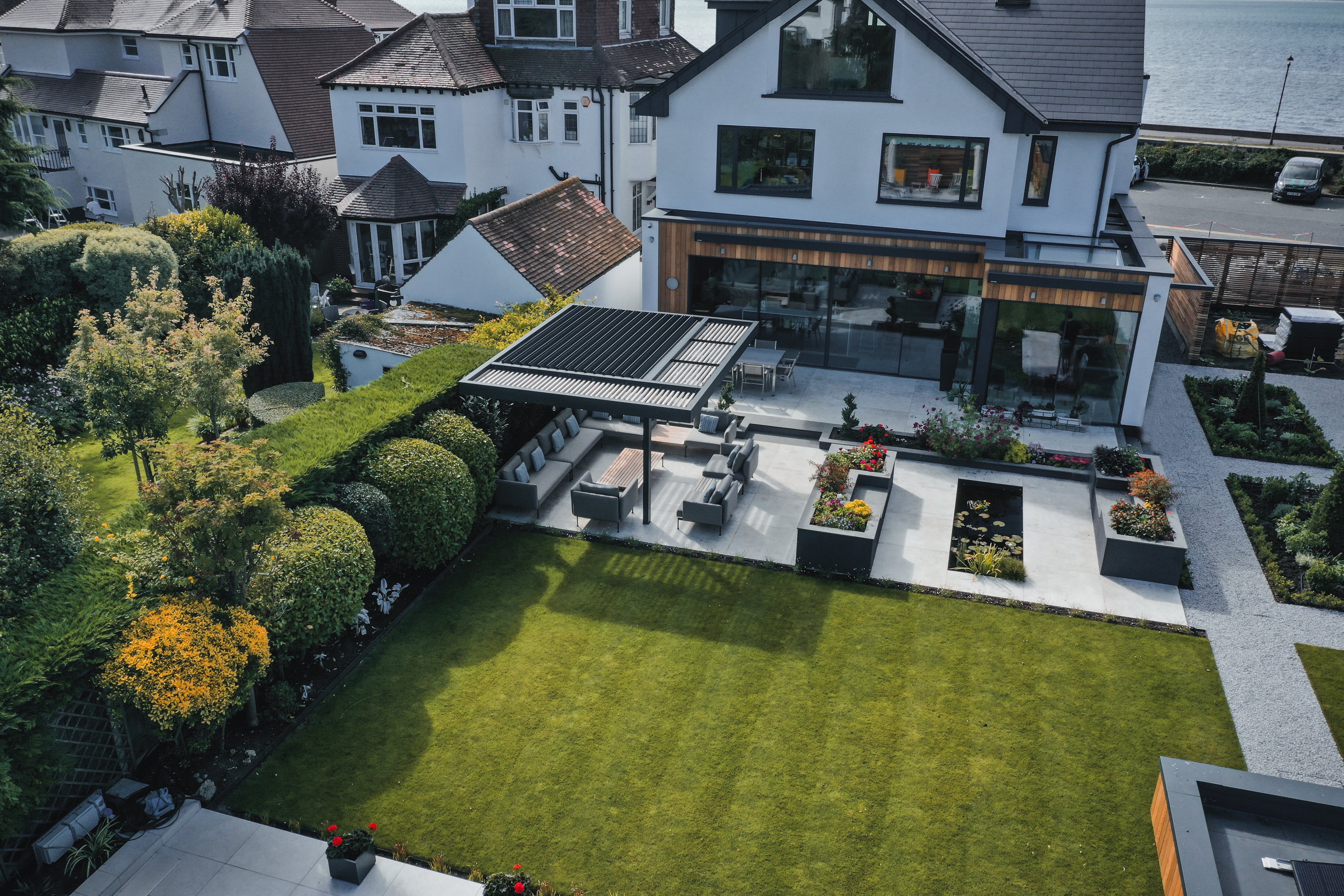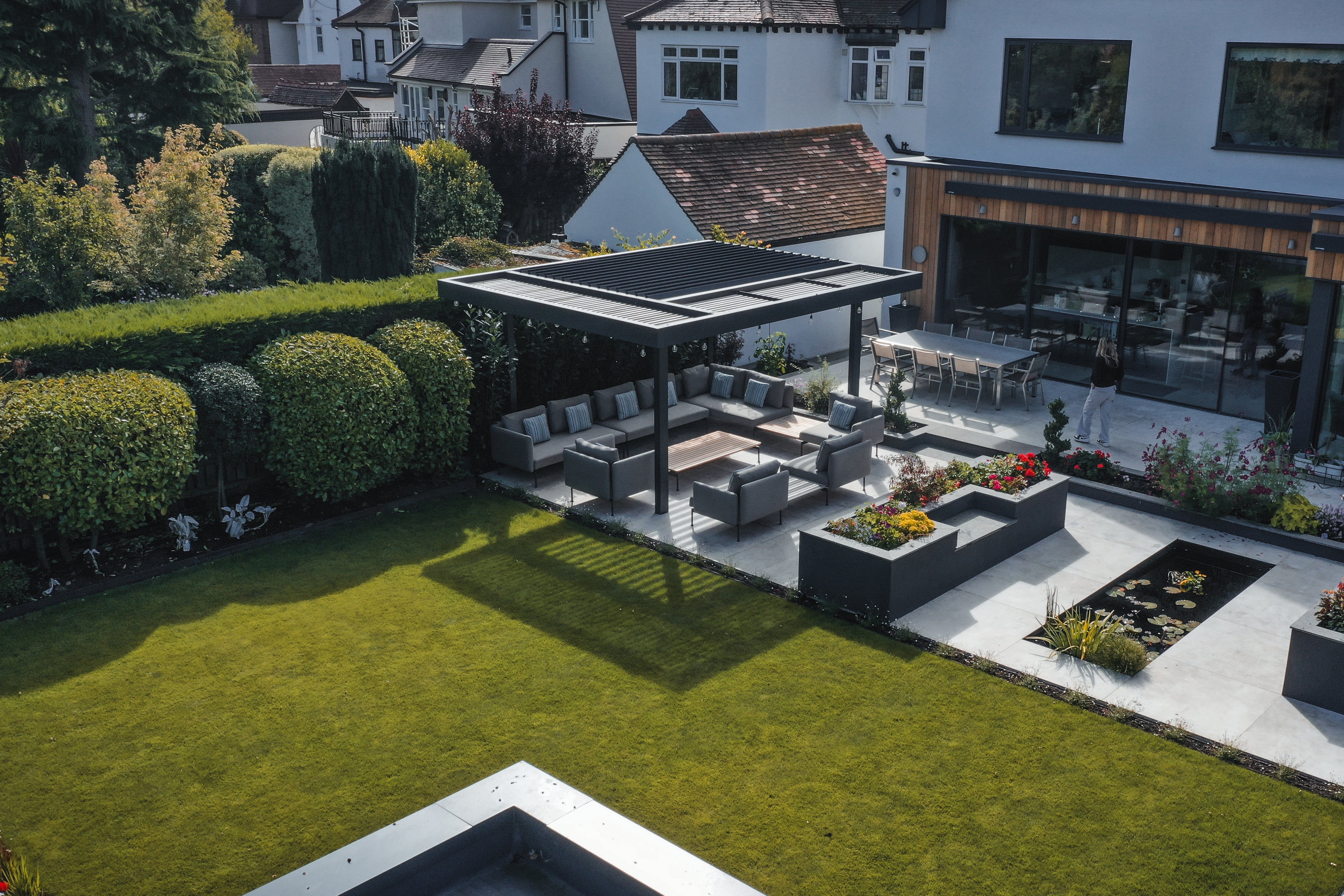 This immaculate, completely re-furbished garden, situated along the seafront called for a simple, modern pergola solution to compliment their contemporary garden design. The garden featured raised flower and vegetable beds, a pond, a pool and a gym. The patio, extended off the back of the house, had a lovely spot in the sun, which required a little shade but took advantage of the sun in the evenings.