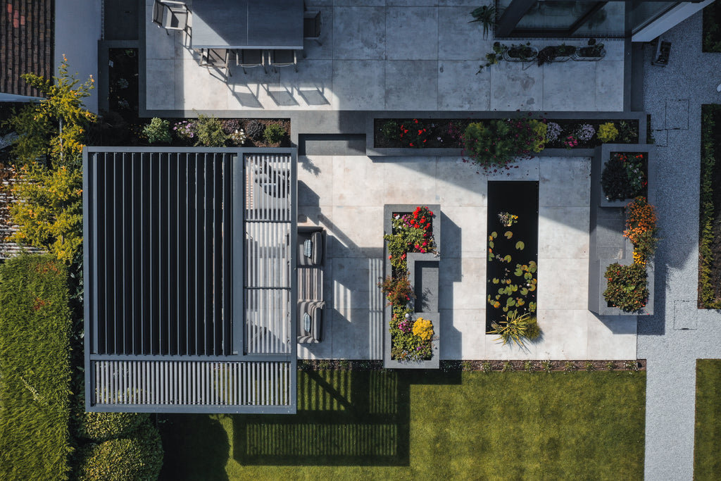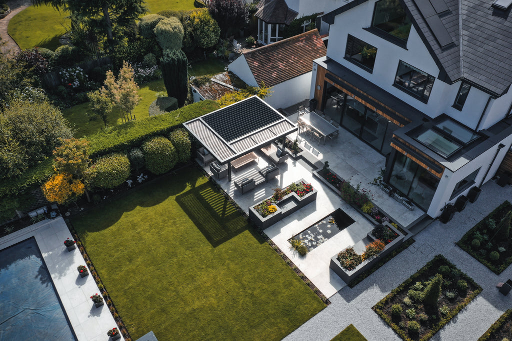 - Simple, Effective Design: Although a simple free-standing design, this garden required a solution to match. The aluminum and wood features of the UMBRIS pergola matched in perfectly with the façade of the house.