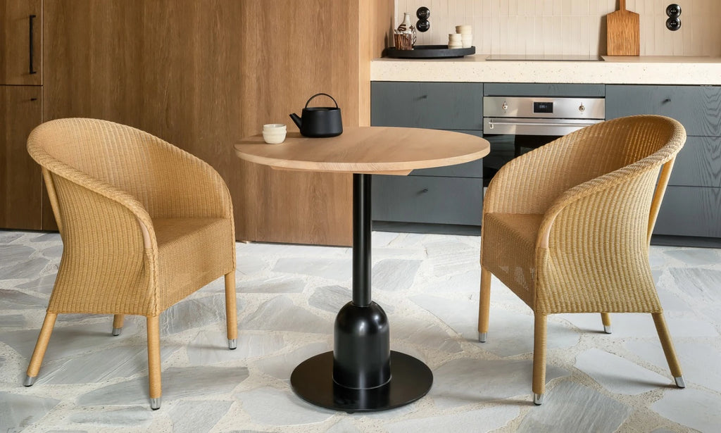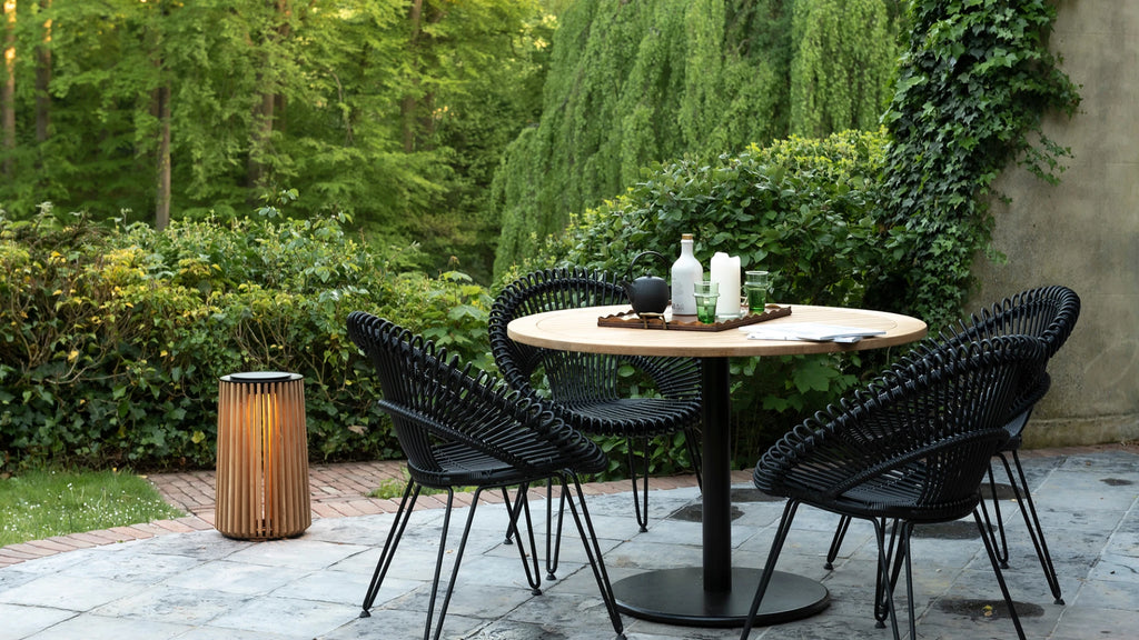 The Wicked Dining Table is a stylish and sophisticated centrepiece for outdoor dining, blending natural textures with a sleek, modern silhouette. Crafted with a solid teak tabletop and a powder-coated aluminium base, this table embodies Vincent Sheppard’s commitment to durable, weather-resistant design without compromising elegance.