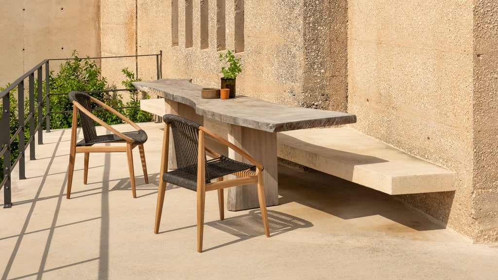 The Frida Dining Chair brings a bold and sculptural aesthetic to outdoor dining spaces. With its circular frame and vertical rope weave, this chair offers a perfect blend of modern flair and relaxed comfort. Whether paired with a dining table or used on its own, Frida is an instant statement piece.