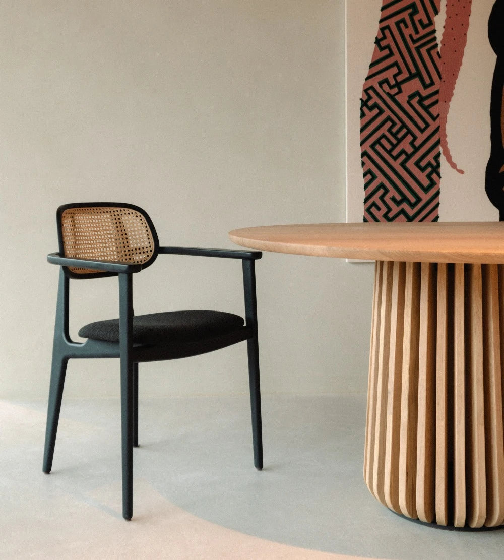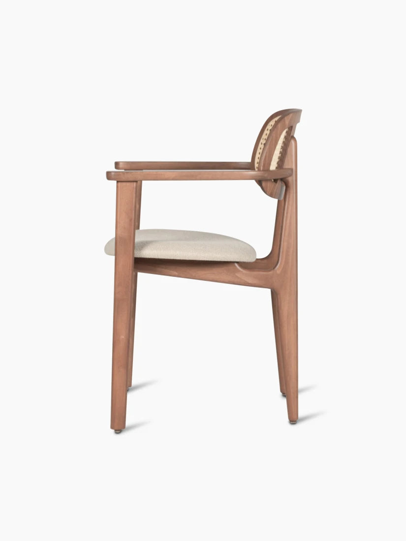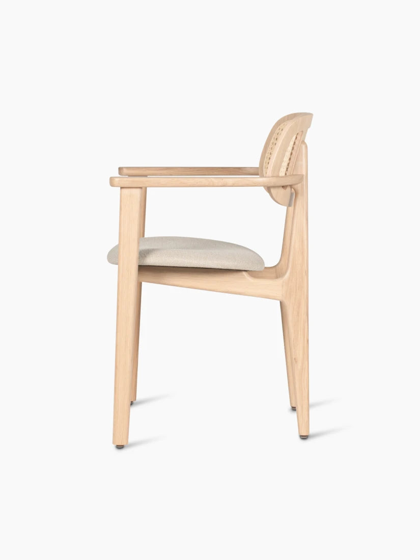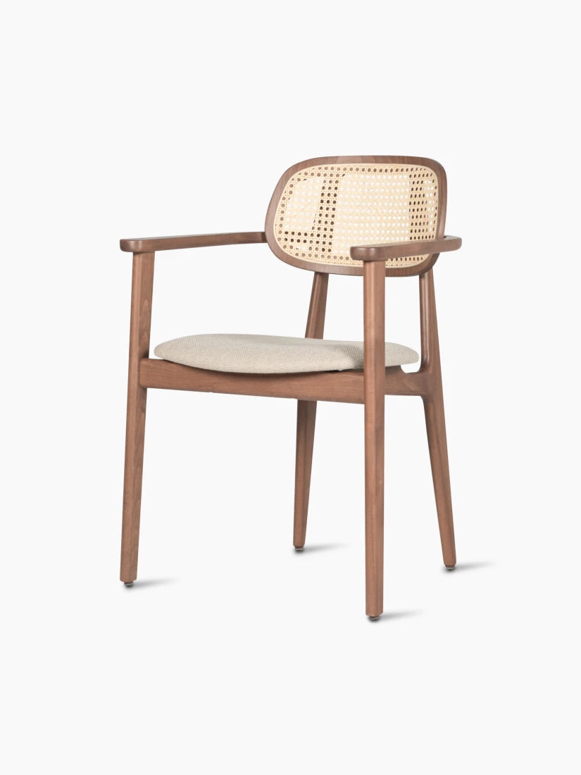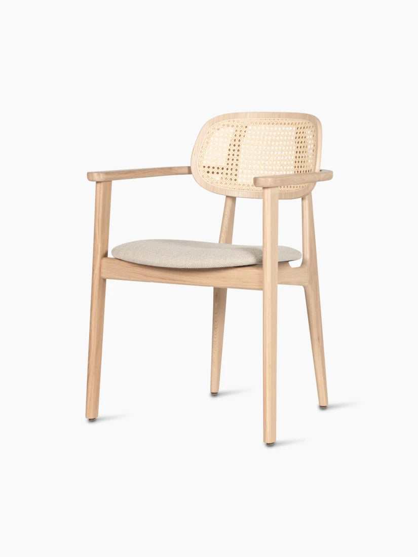 Enhance your dining experience with the exquisite Titus Dining Armchair. Featuring a beautifully crafted cane backrest, a solid wood frame, and a plush upholstered seat, Titus is designed to make a refined design statement while delivering exceptional everyday comfort.
