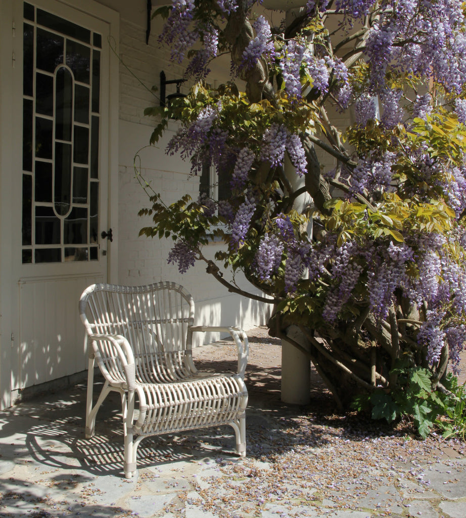 Lucy dining armchair is a stackable garden chair with a distinct design. Available colour: Off white.