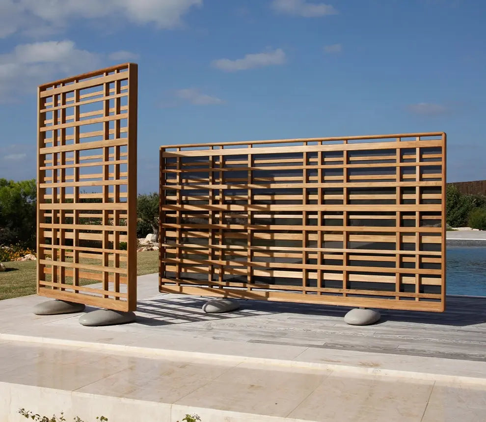 Barlow Tyrie partners with world-class designers to create innovative outdoor solutions. The Woodland Screen with its pebble foot design combines architectural beauty, natural stability, and practical screening for elegant privacy.